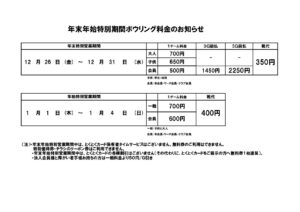 年末年始料金表